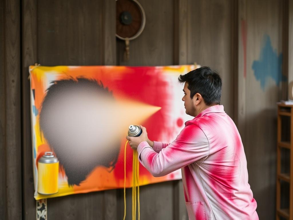 Внутри баллончика краска находится под давлением вместе с пропеллентом. При нажатии на клапан краска вылетает через форсунку и распадается на мелкие частицы, образуя туманную струю. Качество распыления зависит от состава краски, состояния форсунки и правильной дистанции до поверхности. Чтобы получить ровное покрытие, держите баллончик под умеренным углом и двигайте рукой плавно, перекрывая предыдущий мазок.